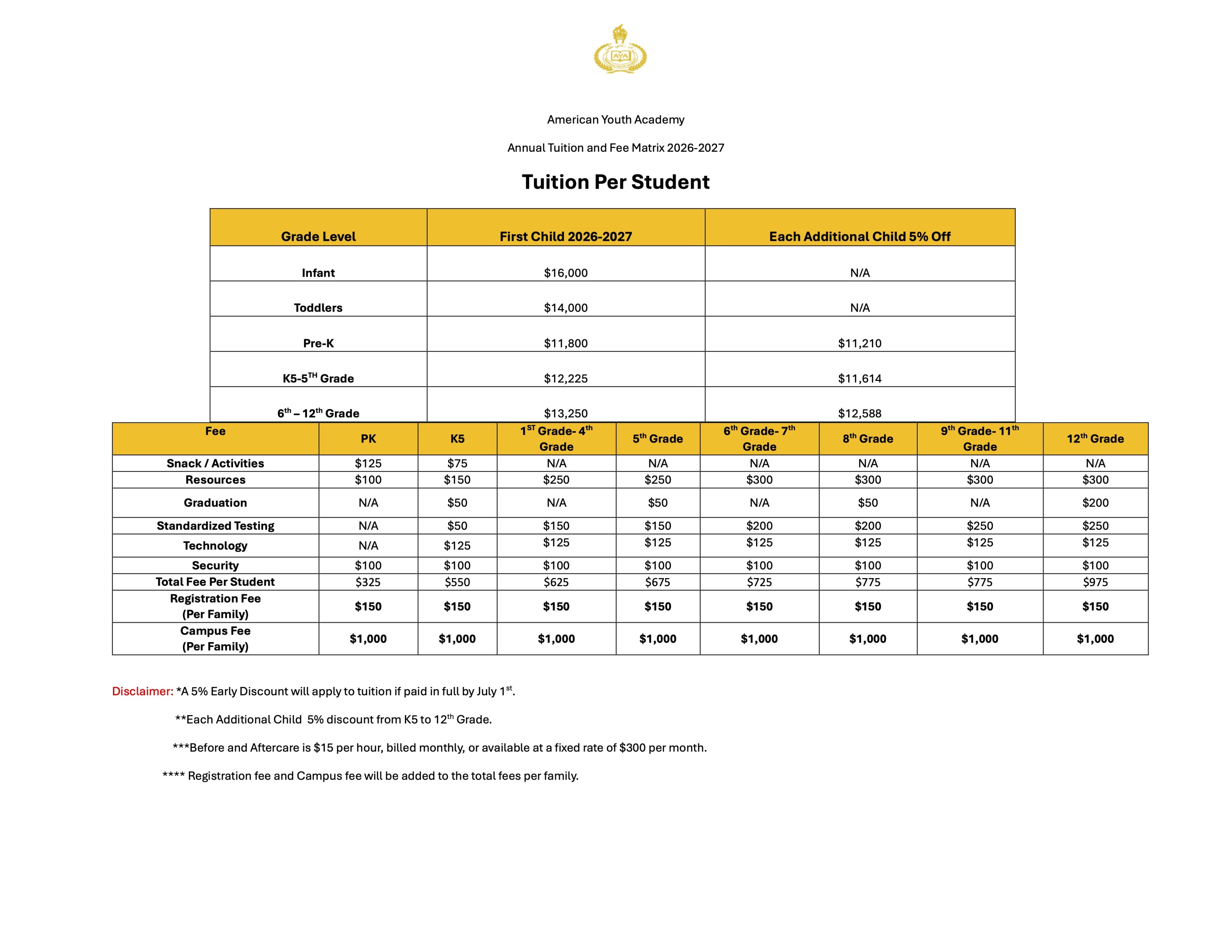 To ensure the safety and convenience of all our parents and guardians, please note that we will no longer be accepting cash payments in the office. Instead, we encourage you to use our secure online portal for making tuition payments.